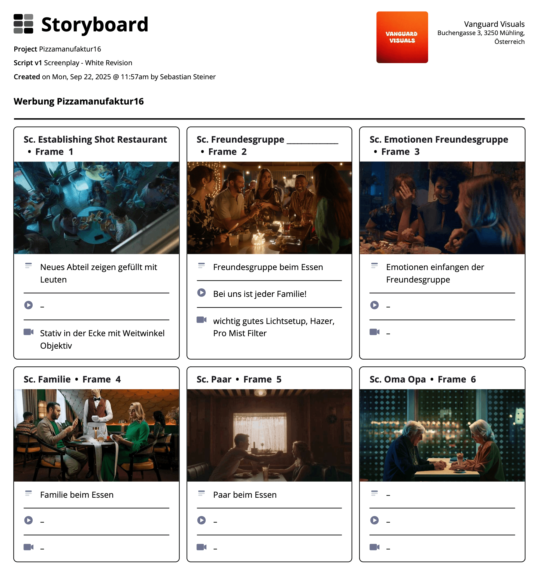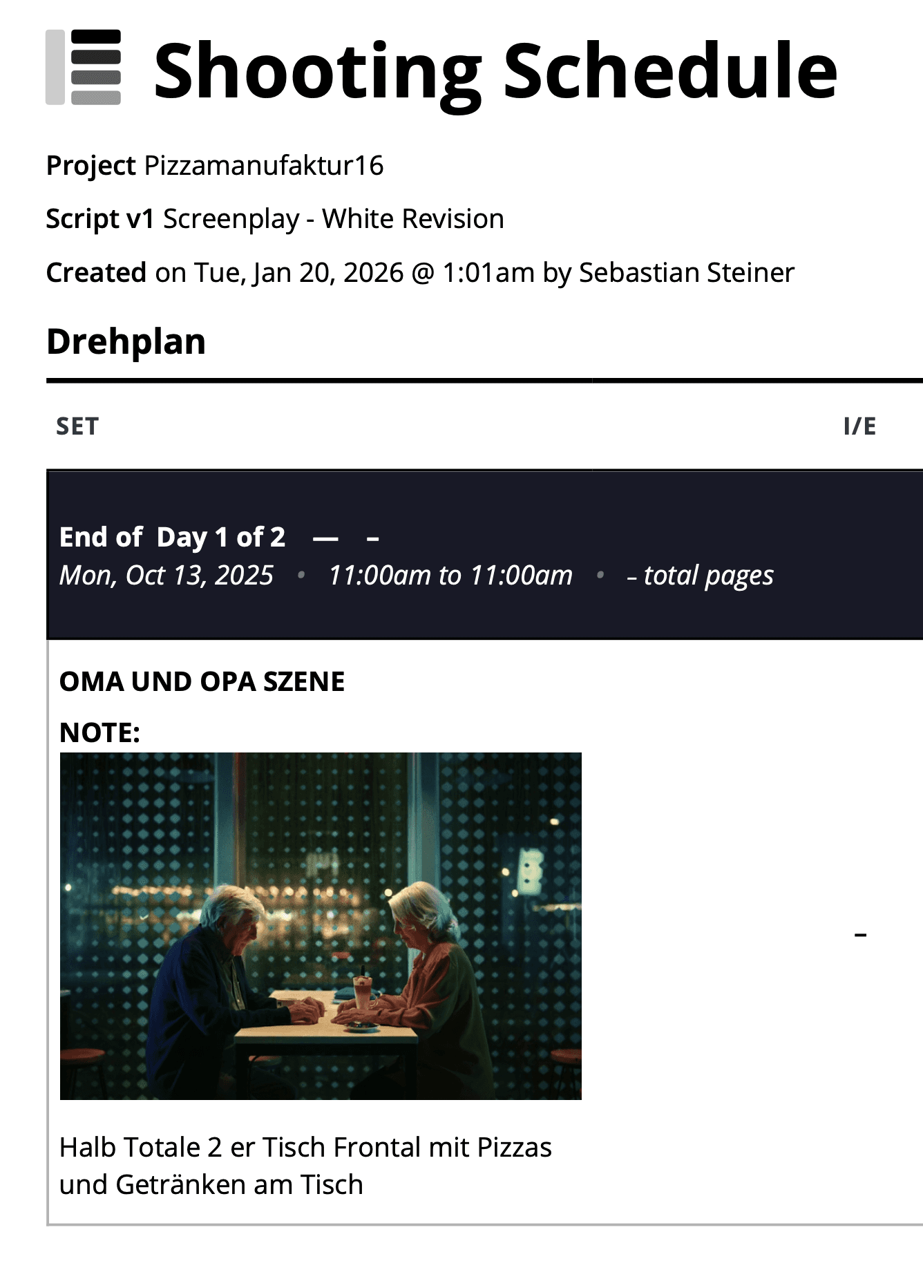 z.B.: https://www.notion.so/sebastiansteiner/26f93f06cac380e989c1c224a52e9a82?v=26f93f06cac381eaba99000cb085c936&source=copy_linkShotlist + Drehbuch als PDF für den Drehtermin vor Ort